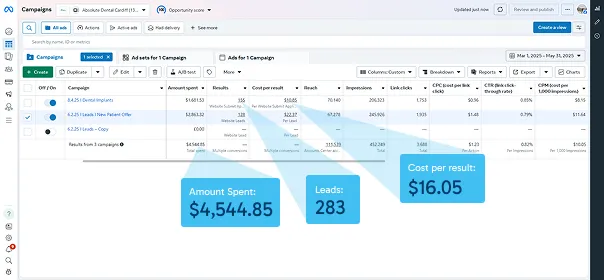 Through continuous testing and smart targeting, we turned ad spend into real appointment opportunities.